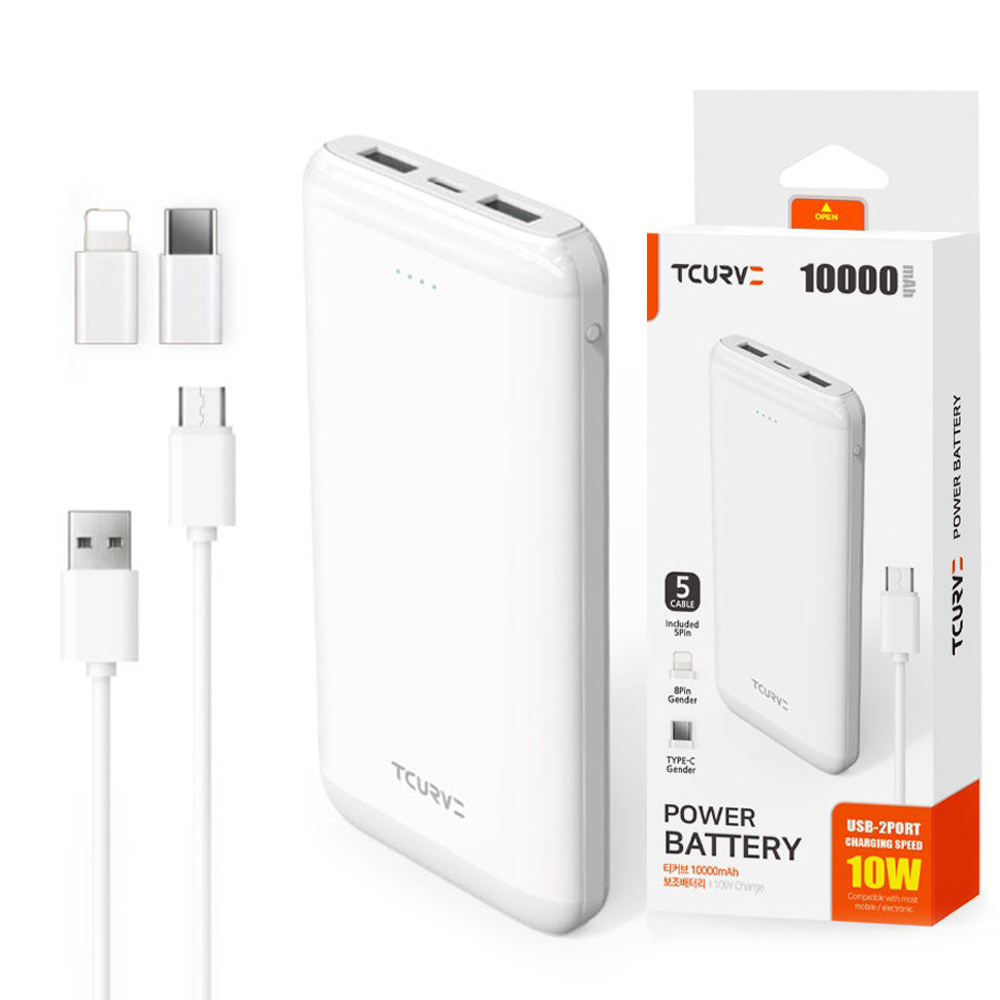 • 티커브 보조배터리 10000mAh 올인원 슬림 듀얼 스마트폰보조배터리 (QTM-MP36A-10K)